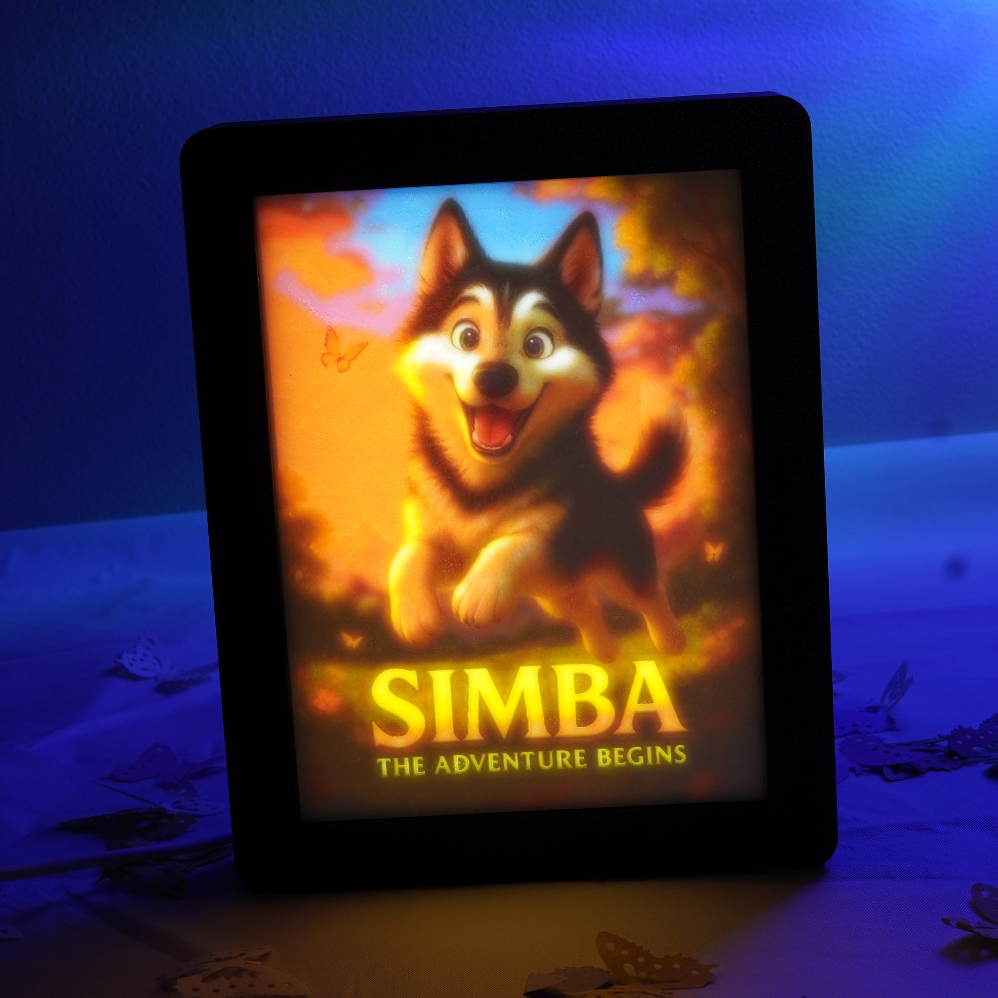 Disney-Style GlowBox™ – 3D Printed Frame with Personalized Movie Poster of Your Pet